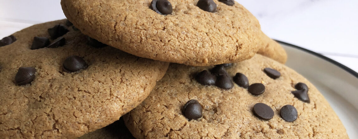 Hacer bolitas con la preparación, aplastarlas y colocar el relleno de mantequilla de maní congelado y cerrar bien. Colocar en una bandeja de horno con papel manteca. Colocar las chispas de chocolate en cada galleta y llevar al horno precalentado a 180 grados por 8 a 10 minutos. Depende del tiempo que dejes enfriar quedará más o menos blandita, a gusto de cada uno.