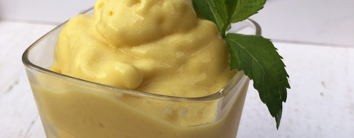 Poner en la procesadora (o una licuadora potente) todo el mango en trozos congelado, agregarle 1 scoop de nuestra WPC80 sabor vainilla y apenas un chorrito de leche descremada.